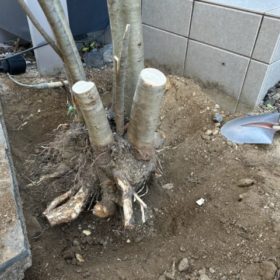 大きな木の抜根作業