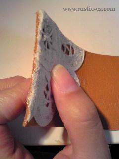 手頃なサイズに皮を切り、100均で買ってきたレースを
