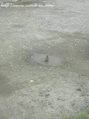 スズメが水たまりで行水してる!!!!!Σ(・ω・ノ)ノ