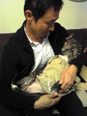 おとなしく抱かれならがまんざらでもないご様子のクウさん。