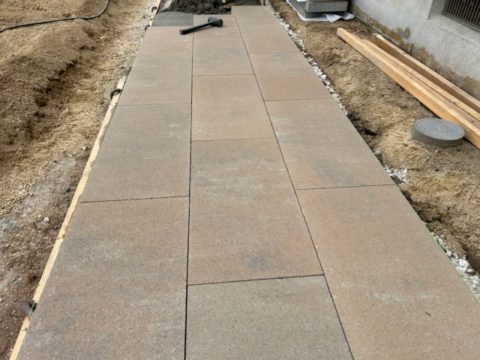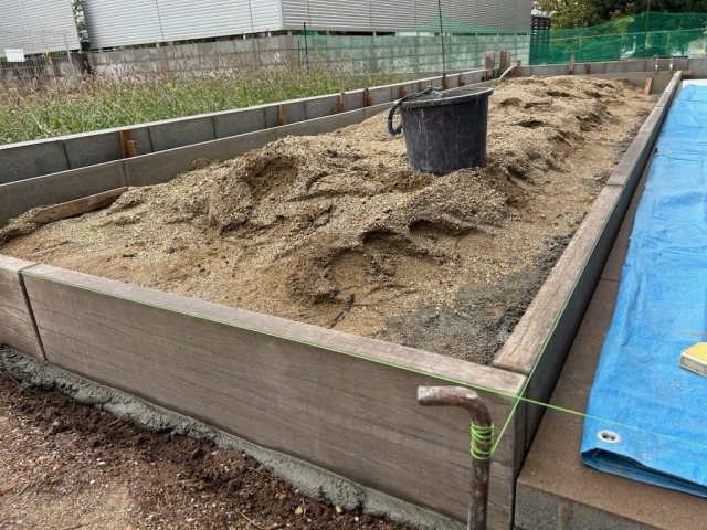 畑スペースの横には石調のコンクリート製品で通路を設けて歩きやすい様にしました。