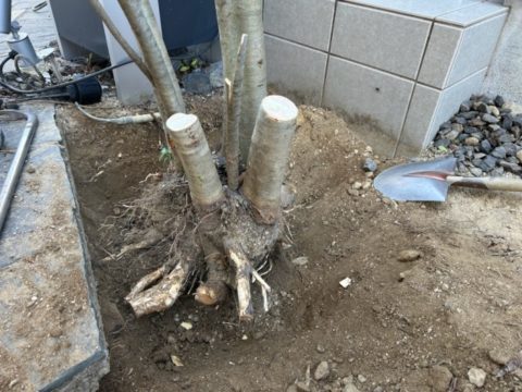 なんとか周辺の構造物に被害を与えず無事に抜根作業完了!!