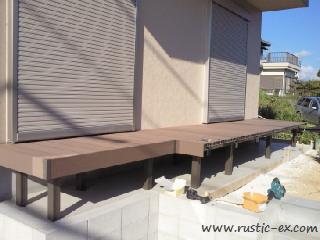 人工木材で造るデッキは縁側風に幅を狭めにしてあります。