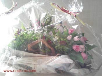 カーネーション・あじさい・バラを使って作ってくださったそうで