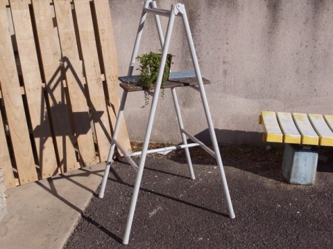 ナチュラルジャンクガーデンにピッタリのシンプルなアイアンラダーです。