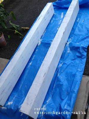 清潔感を出しつつ風合いも出しつつな白い門柱にしていきます♪