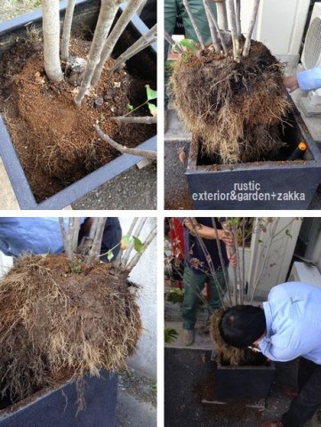 安藤くんがせっせと根を整え、土をある程度落として作業しております。