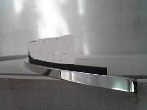 ステンレスの鏡面仕上げのアーチ型バーの上に