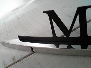 焼付塗装仕上げの黒い文字が付いているデザインです♪