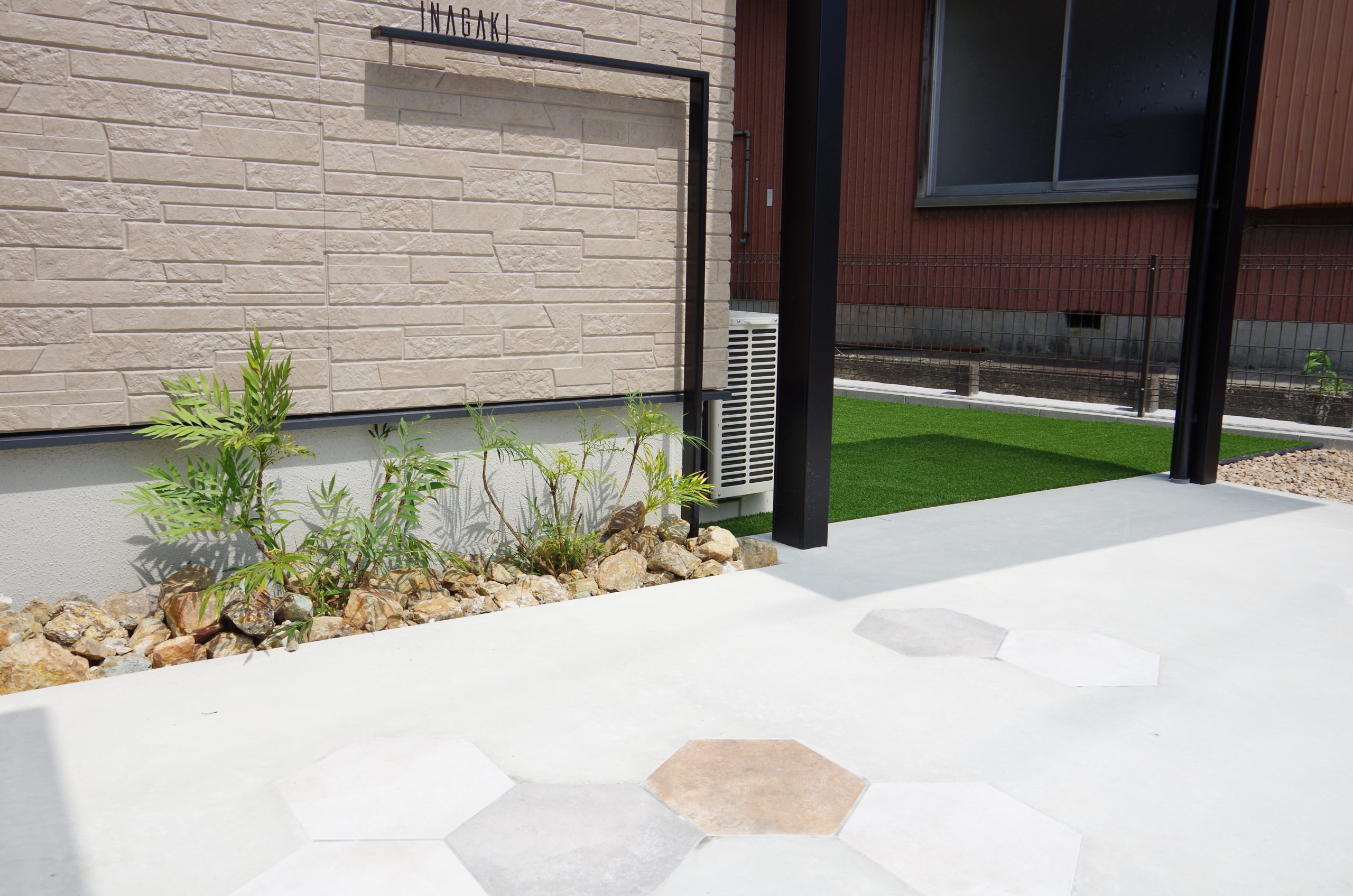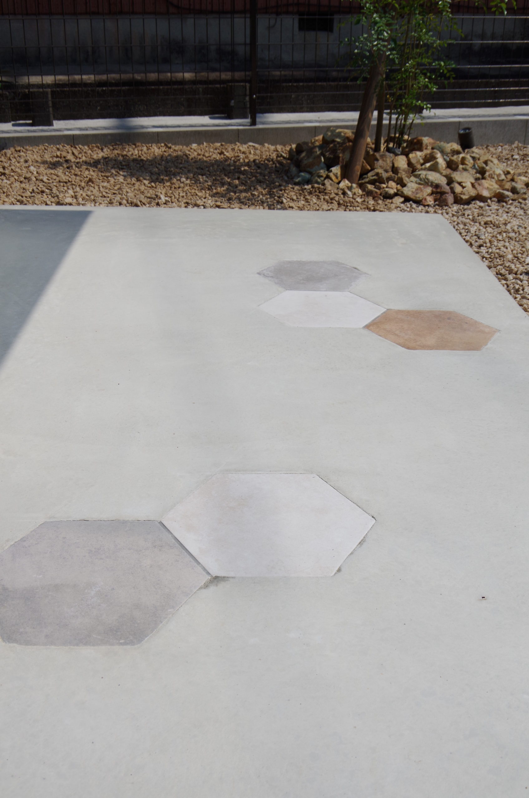 可愛らしいお車が似合う明るく軽やかな外構が出来上がりました。