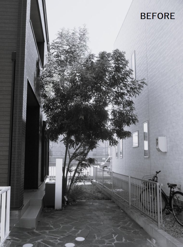 木の陰になっていた玄関前が明るくなり気持ちの良いスペースに。